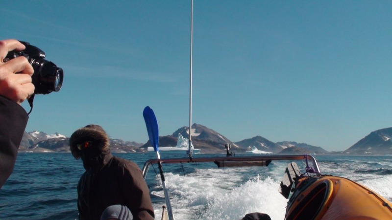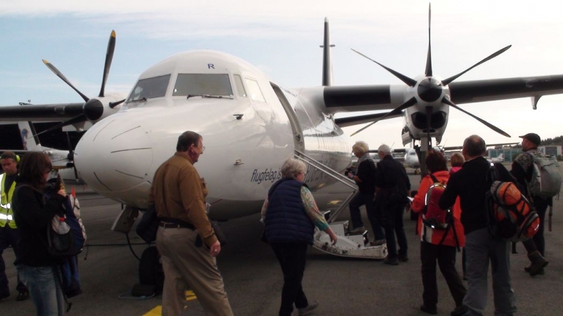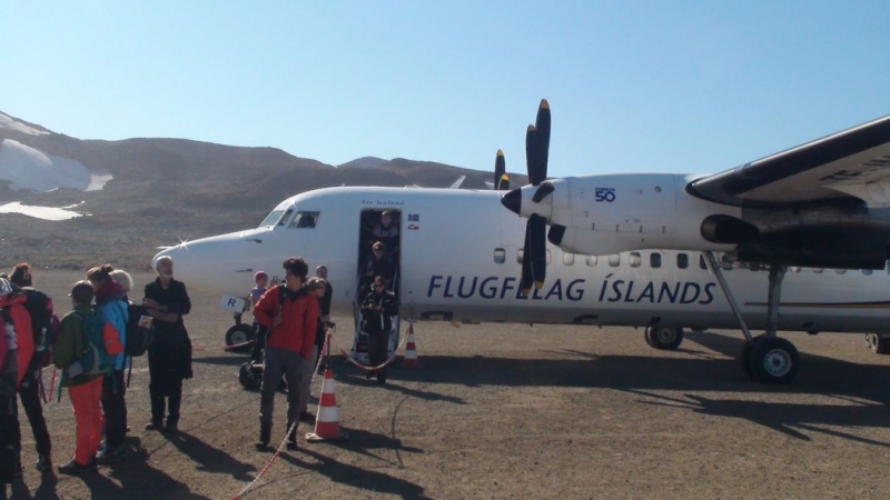 Ab nach Grönland, der Flug von Reykjavik nach Kulusuk verlief ruhig. Nach der Landung in Kulusuk geht es weiter mit dem Boot nach Tasiilaq.