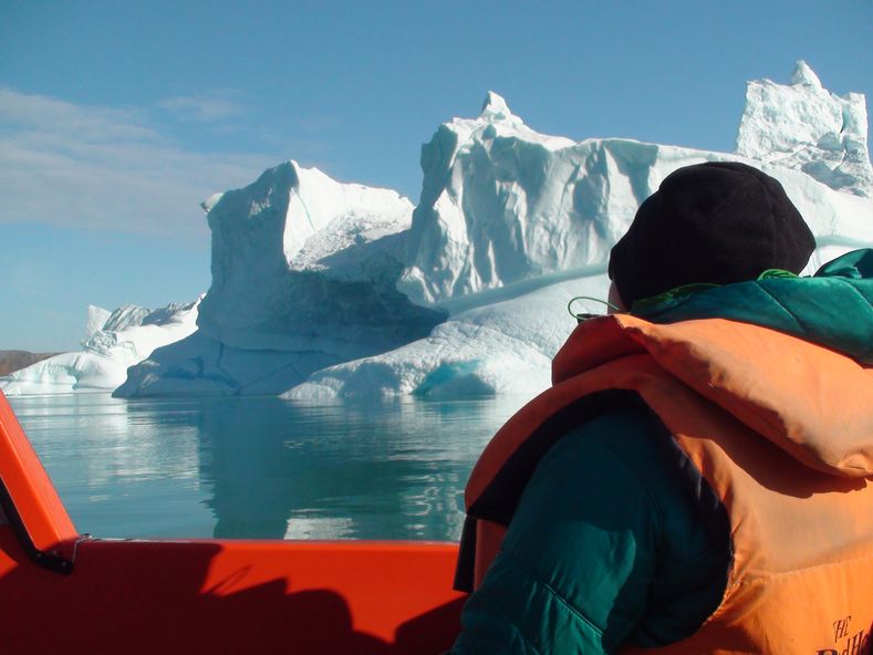 Die See ist heute ruhig. Anbetracht dessen entscheiden wir uns für den Ausflug per Boot zum Bussemand Gletscher. Nach dem Frühstück gehen wir zur Anlegestelle. Bei der hohen Geschwindigkeit bis zu 40 Knoten ist es frisch auf dem Boot. Gegen Mittag kommen wir an der Gletscherzunge an. Heute sind wir zum ersten Mal auf der Hauptinsel Grönlands, denn Tasiilaq liegt auf einer vorgelagerten Kleininsel. Nach einer kurzen Wanderung zu den Ausläufern des Gletschers und einer kurzen Teepause geht es mit dem Boot zwischen den Eisbergen weiter. Bei den beeindruckenden Formationen kann man sich nur schwer entscheiden, welche Motive man fotografiert.