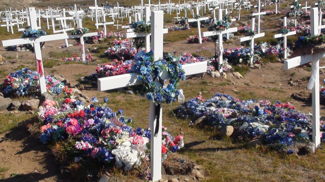 Am Vormittag starten wir eine Wanderung ums Tasiilaq. Am Ortsausgang gehen wir am Friedhof vorbei. Die Gräber sind bunt geschmückt. Überall Plastikblumen, ist auch selbstverständlich, denn echte Blumen sind hier rar.
