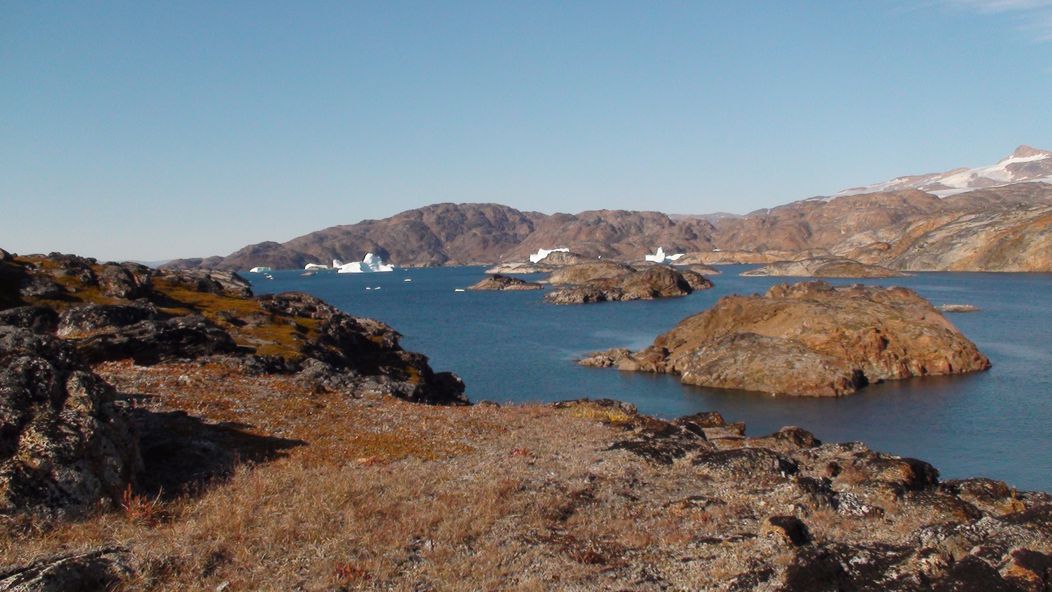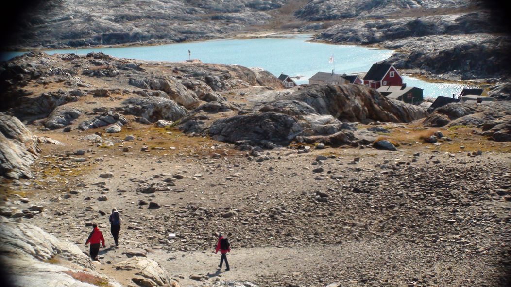 Nächster Halt: Tiniteqilaaq. Mittagspause, oberhalb der Siedlung lassen sich die vorbei treibenden Eisberge des Sermilik-Fjords bewundern.