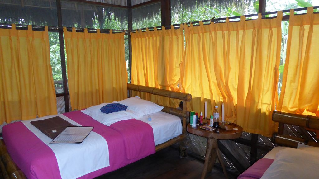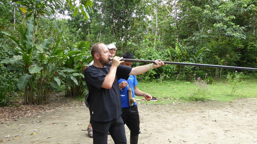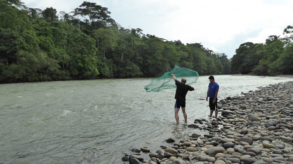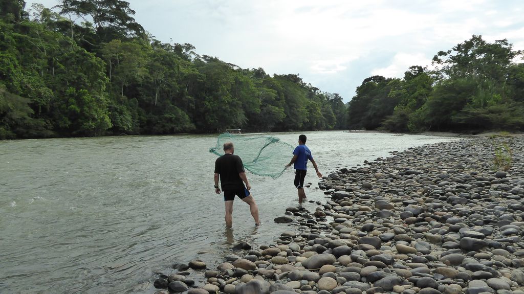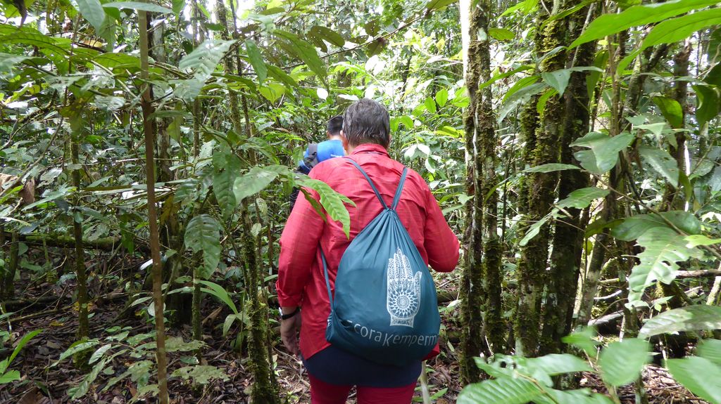 Glücklicherweise hat es nach unserer Ankunft in der Lodge aufgehört zu regnen und wir konnten vier wunderschöne Tage und Nächte in der „Liana Lodge“ verbringen, die mit diversen Aktivitäten gefüllt waren, wie z.B. Wanderungen in Regenwald, Baden im Fluss, Floßfahrt, Goldschürfen, Besuch einer Kichwa Familie und des AmaZOOnico. Die Abgeschiedenheit ohne Strom, Telefon (auch kein Mobilfunk) und Internet war sehr erholsam. Unser Kichwa-Guide Angel konnte zu allen Themen umfangreiche Informationen beisteuern. Zu den anderen Gästen konnten wir nette Kontakte knüpfen und mit ihnen sehr interessante Abendgespräche bei Kerzenlicht führen. Die Abende und Nächte wurden von stundenlangen Sinfonien der gesamten Tierwelt untermalt. Frösche, Zikaden, Vögel und Affen schienen sich dabei übertrümpfen zu wollen.