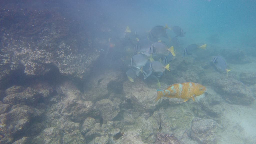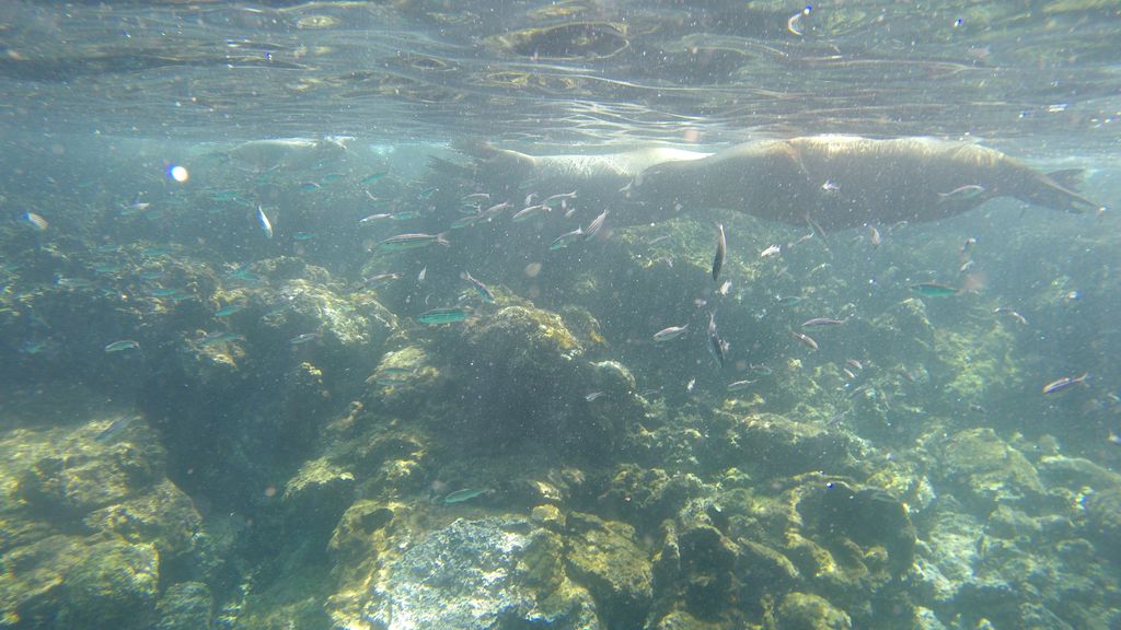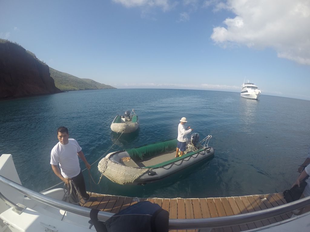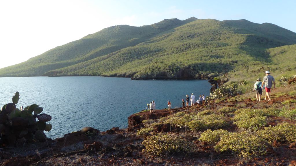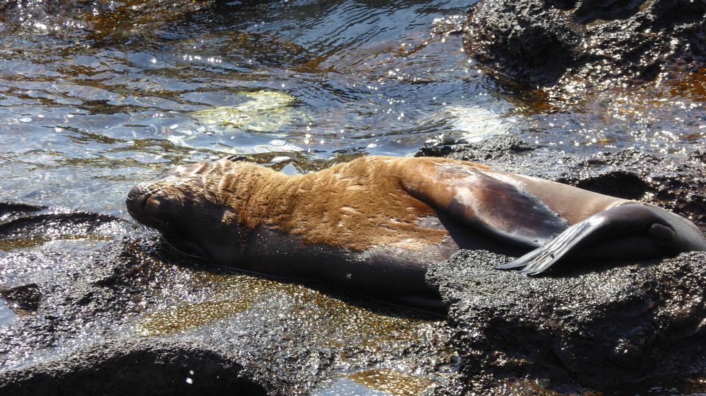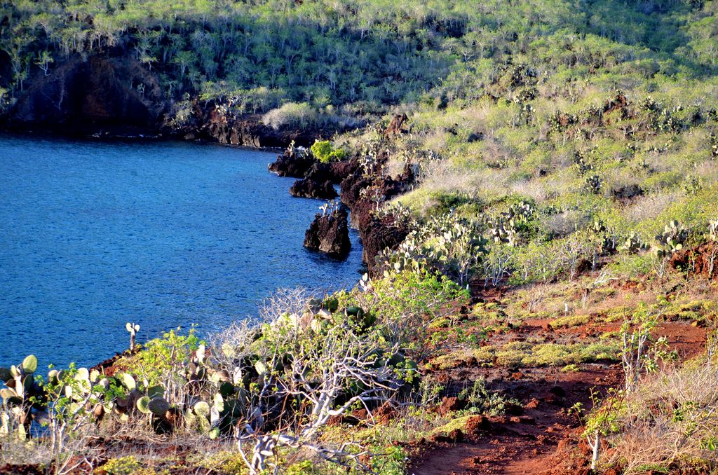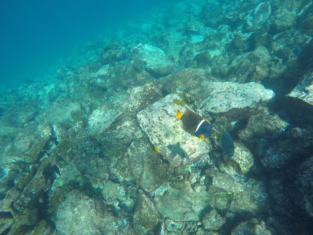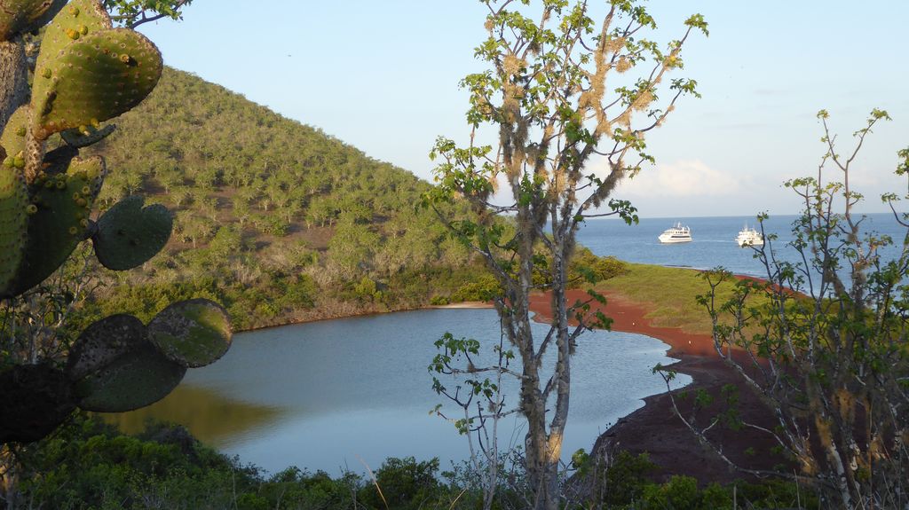 Breits in der Nacht legte das Schiff ab, um rechtzeitig vor dem Weckruf um 6 Uhr in der Bucht der Isla Rábida ankern zu können. Während des Landgangs vor dem Frühstück konnten wir an dem kleinem See unerwartet Flamingos sichten. Seitdem das Wasser dieses Gewässers vor einigen Jahren durch einen Tsunami mit Salzwasser verunreinigt wurde, bleiben die Flamingos aus. Beim Schnorcheln nach dem Frühstück wurden wir wieder von verschiedenen bunten Fischen begleitet, auch Seelöwen und Rochen kreuzten unseren Weg.