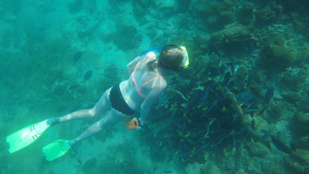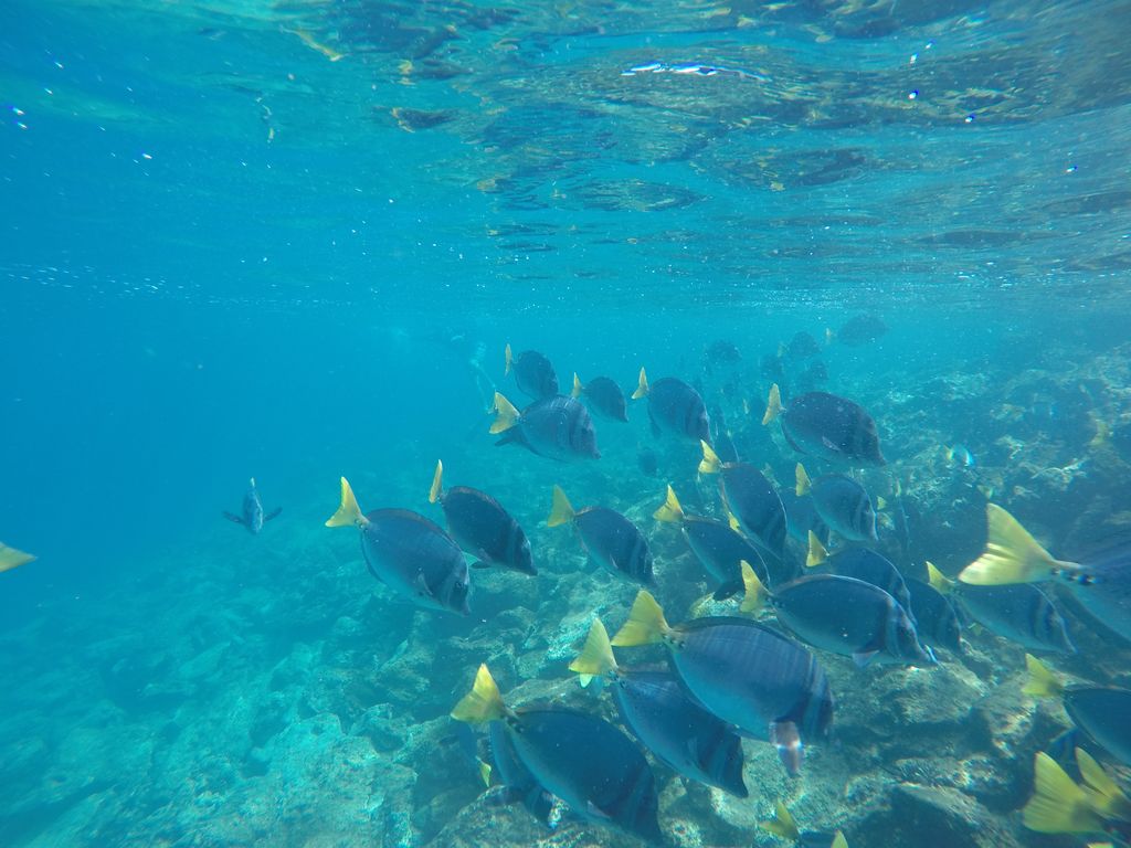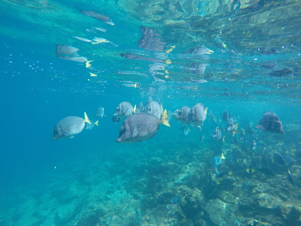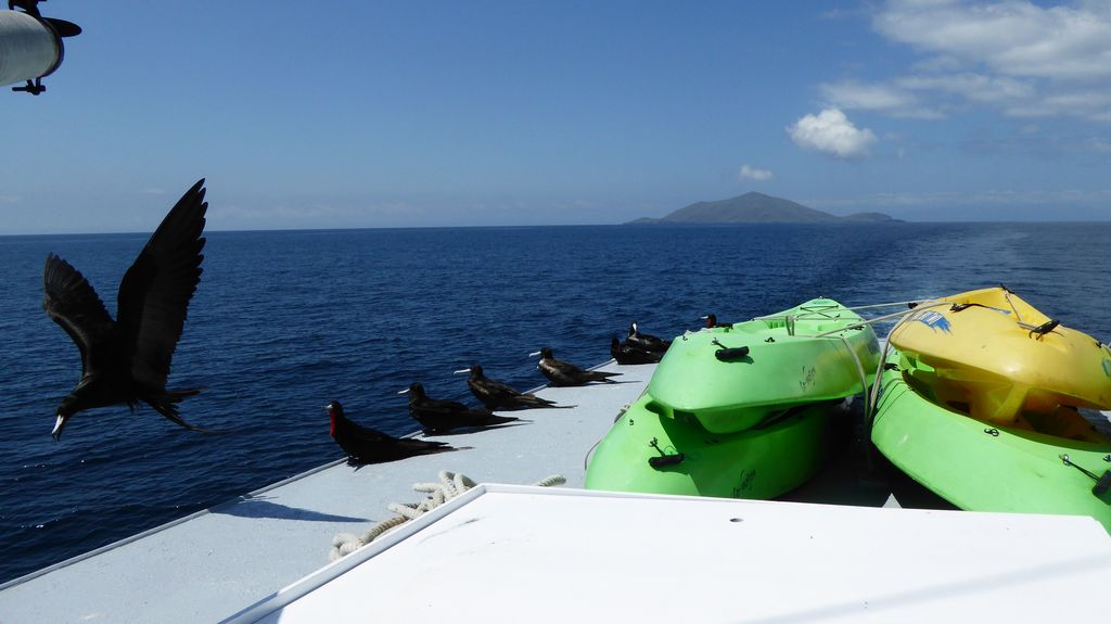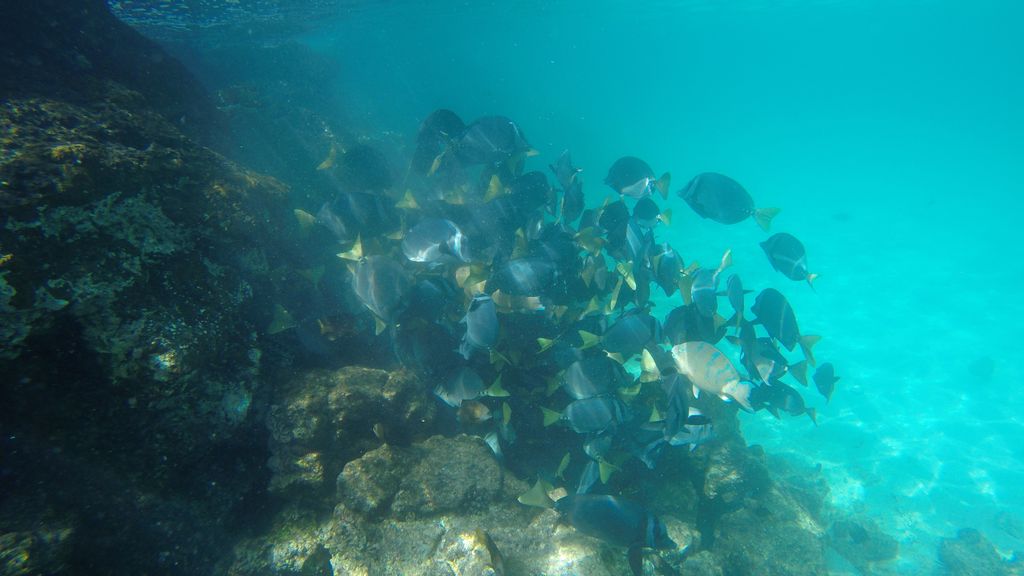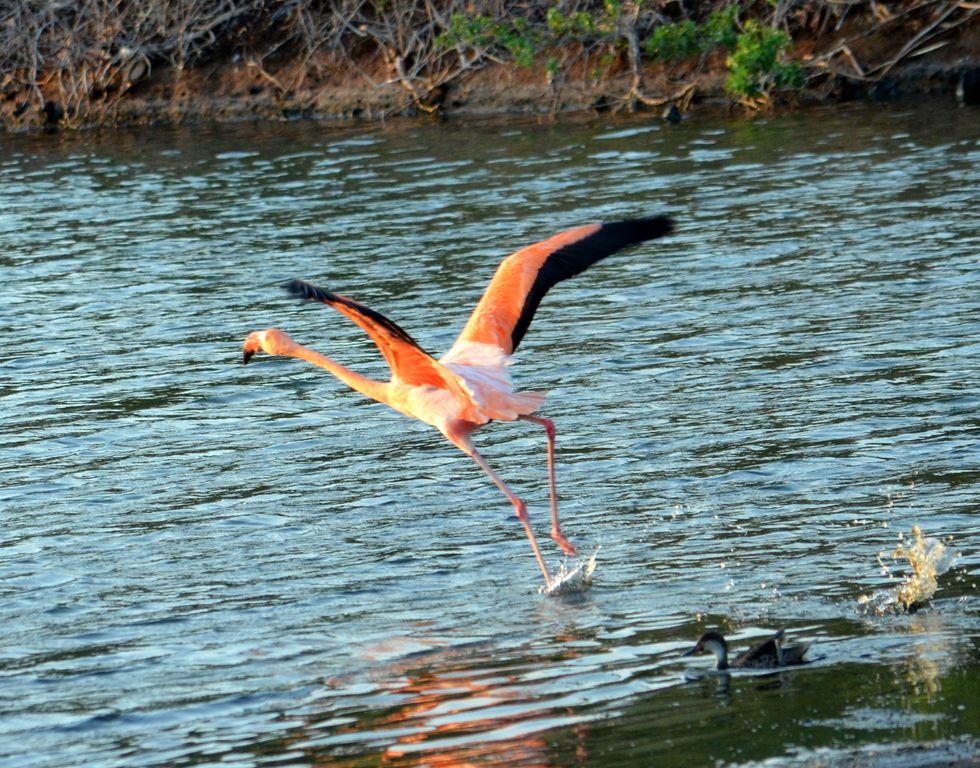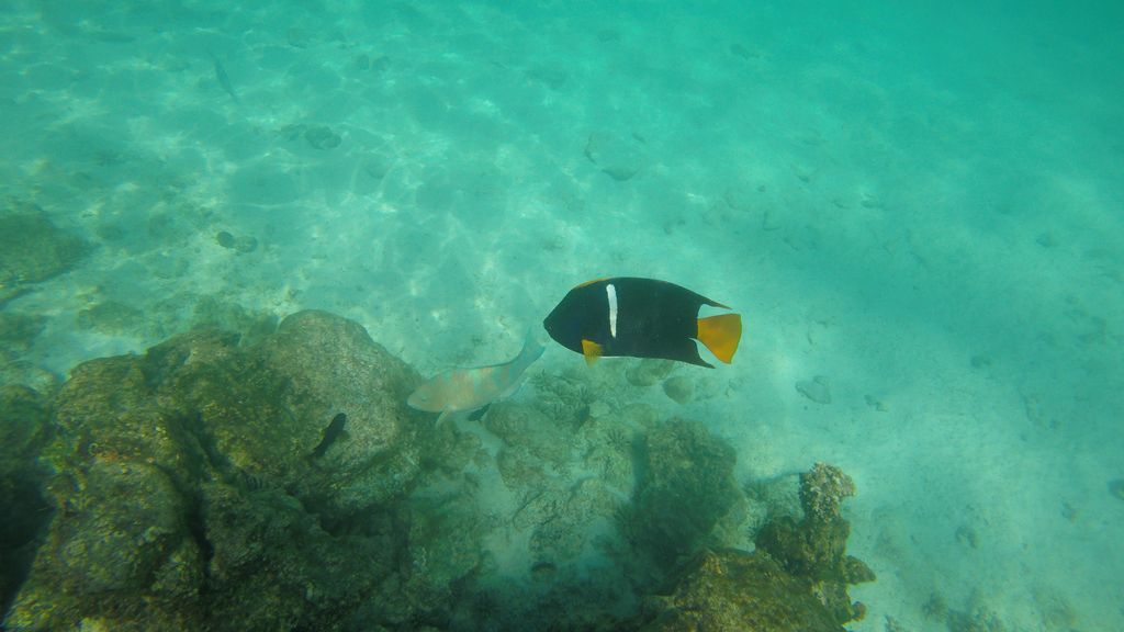 Breits in der Nacht legte das Schiff ab, um rechtzeitig vor dem Weckruf um 6 Uhr in der Bucht der Isla Rábida ankern zu können. Während des Landgangs vor dem Frühstück konnten wir an dem kleinem See unerwartet Flamingos sichten. Seitdem das Wasser dieses Gewässers vor einigen Jahren durch einen Tsunami mit Salzwasser verunreinigt wurde, bleiben die Flamingos aus. Beim Schnorcheln nach dem Frühstück wurden wir wieder von verschiedenen bunten Fischen begleitet, auch Seelöwen und Rochen kreuzten unseren Weg.