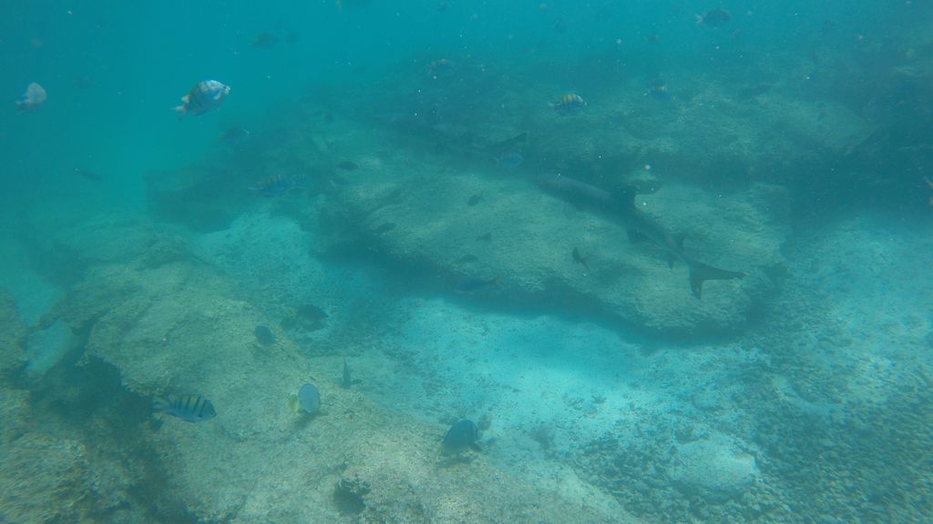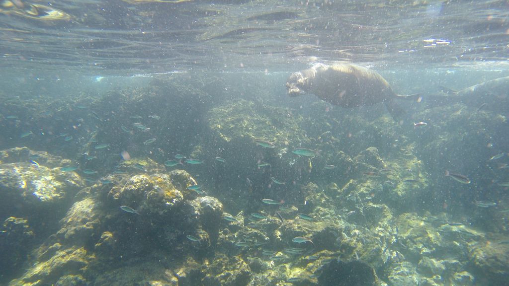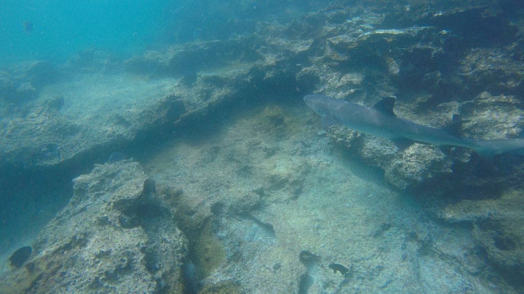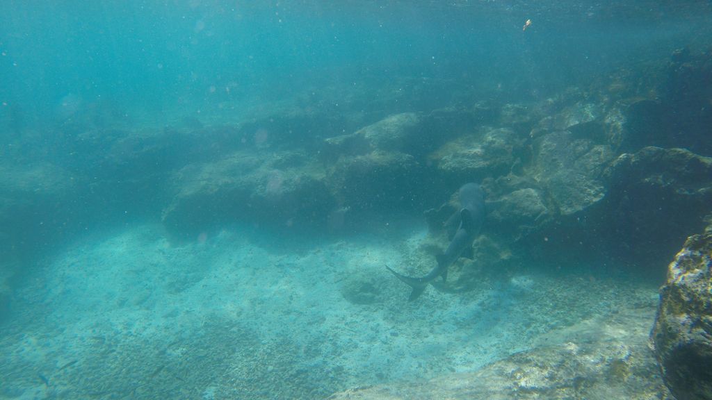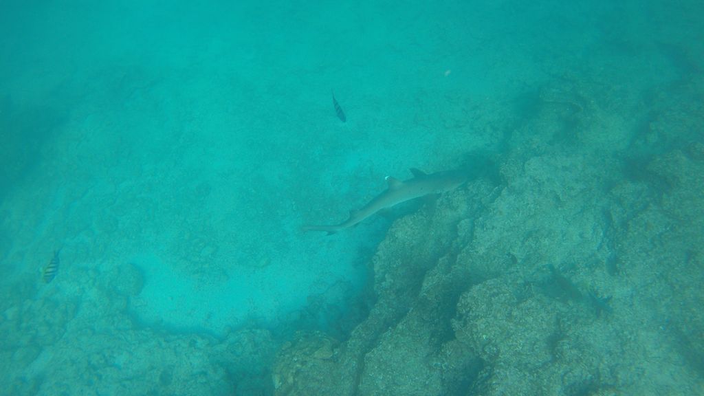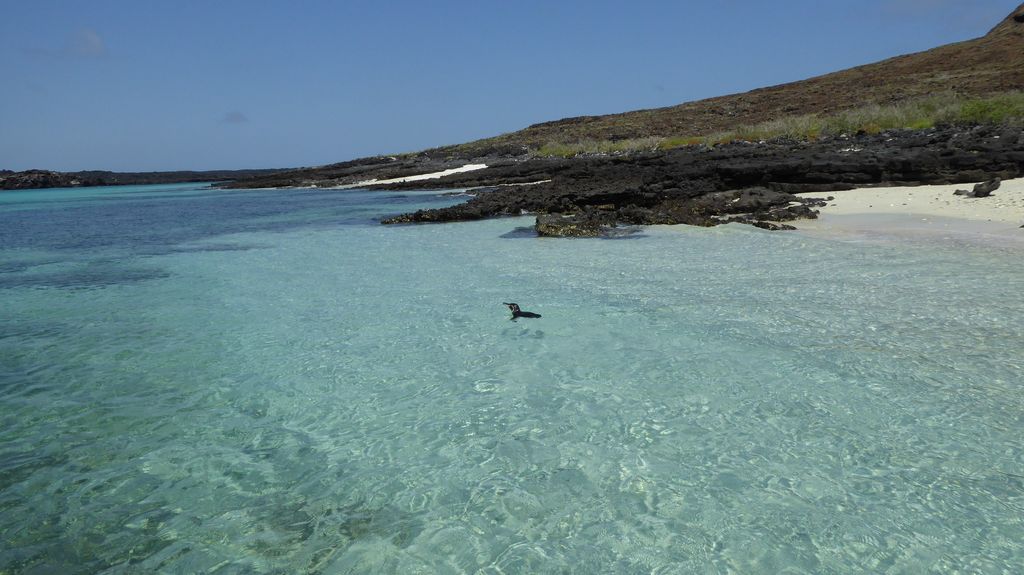 Die Mittagszeit wurde genutzt, um zur Isla Sombrero Chino (Chinese Hat Island) zu wechseln, wo ein kurzer Landgang eingelegt wurde. Beim darauffolgenden Schnorchelgang konnte ich mehrere Weißspitzen-Haie sichten. Ich wurde aus kürzester Entfernung von Seelöwen bestaunt und ich warf die letzten Blicke auf die wunderbare Unterwasserwelt Galapagos, denn nach der Rückkehr auf Schiff wurde zum letzten Mal der Anker gelichtet und es ging zurück nach Baltra, dort wo alles begann.