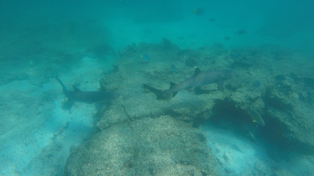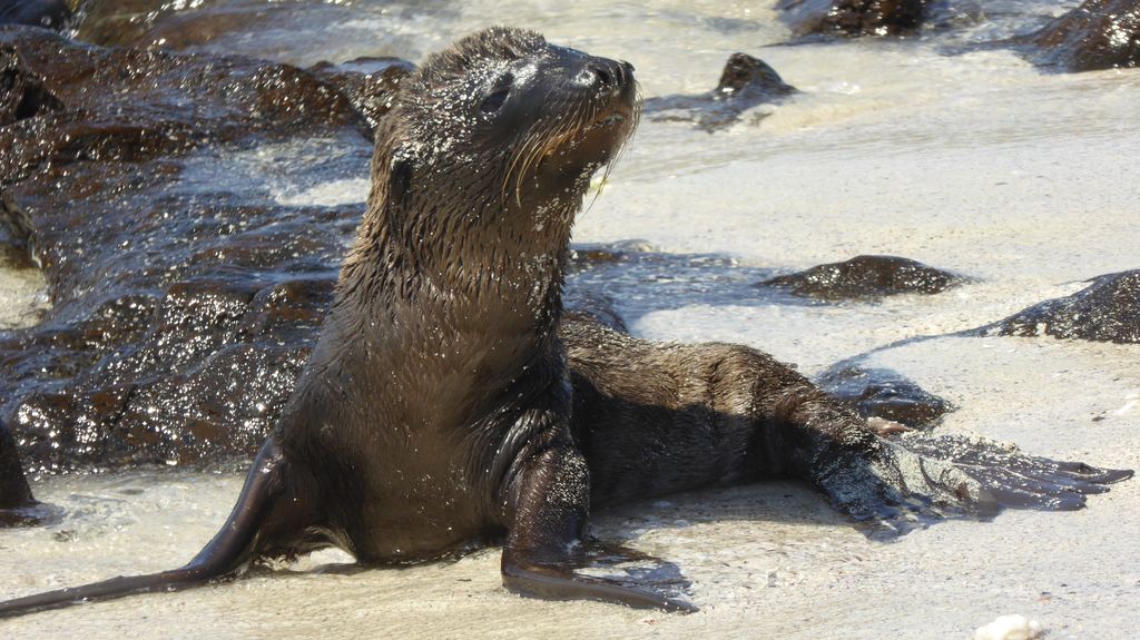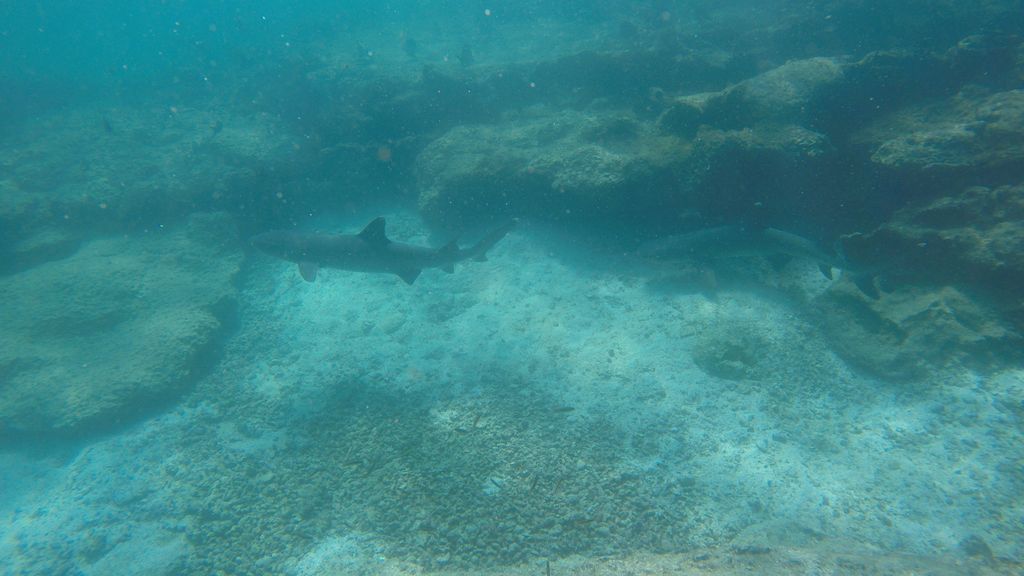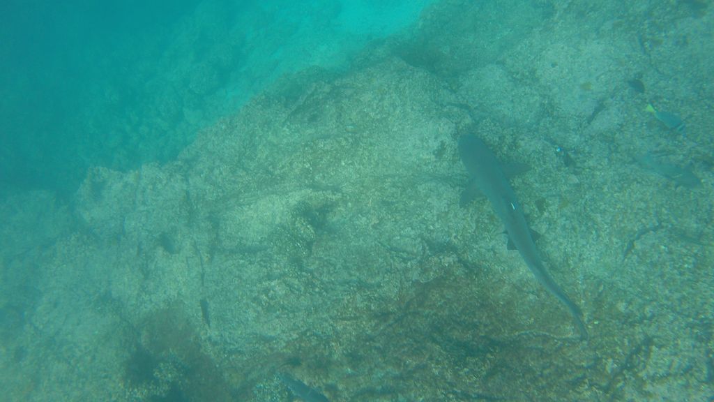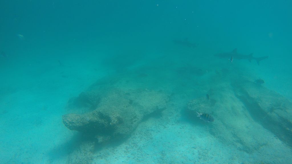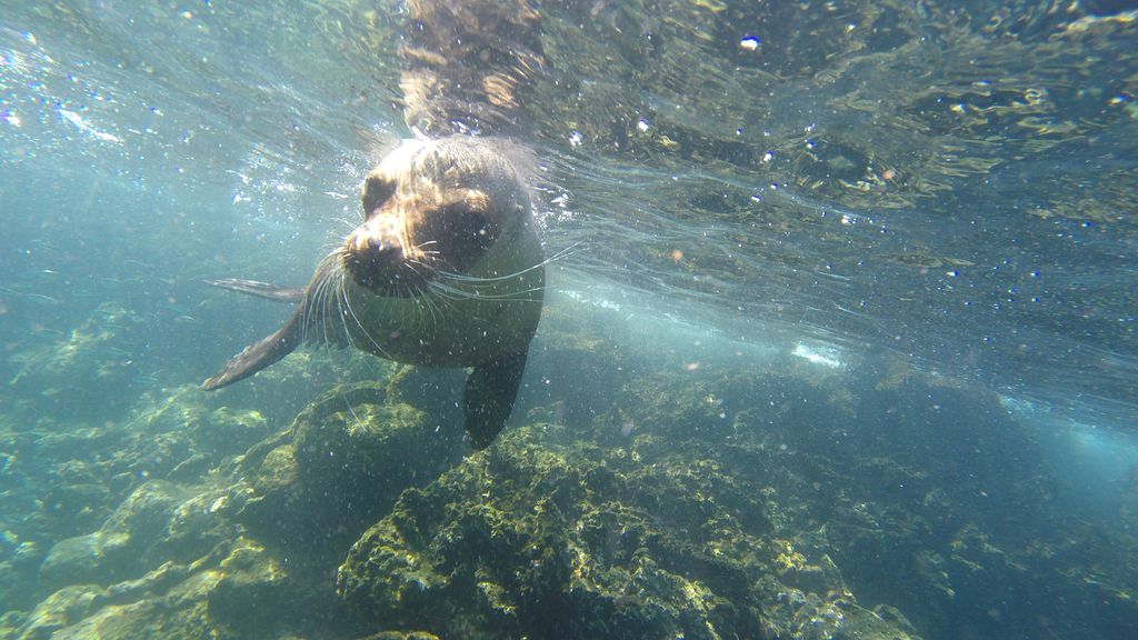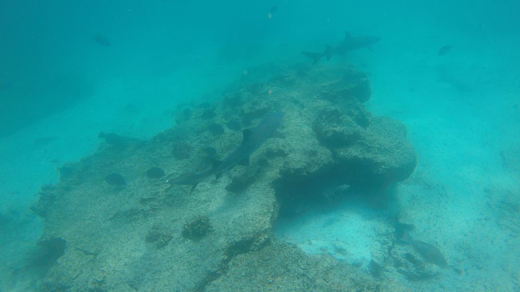 Die Mittagszeit wurde genutzt, um zur Isla Sombrero Chino (Chinese Hat Island) zu wechseln, wo ein kurzer Landgang eingelegt wurde. Beim darauffolgenden Schnorchelgang konnte ich mehrere Weißspitzen-Haie sichten. Ich wurde aus kürzester Entfernung von Seelöwen bestaunt und ich warf die letzten Blicke auf die wunderbare Unterwasserwelt Galapagos, denn nach der Rückkehr auf Schiff wurde zum letzten Mal der Anker gelichtet und es ging zurück nach Baltra, dort wo alles begann.