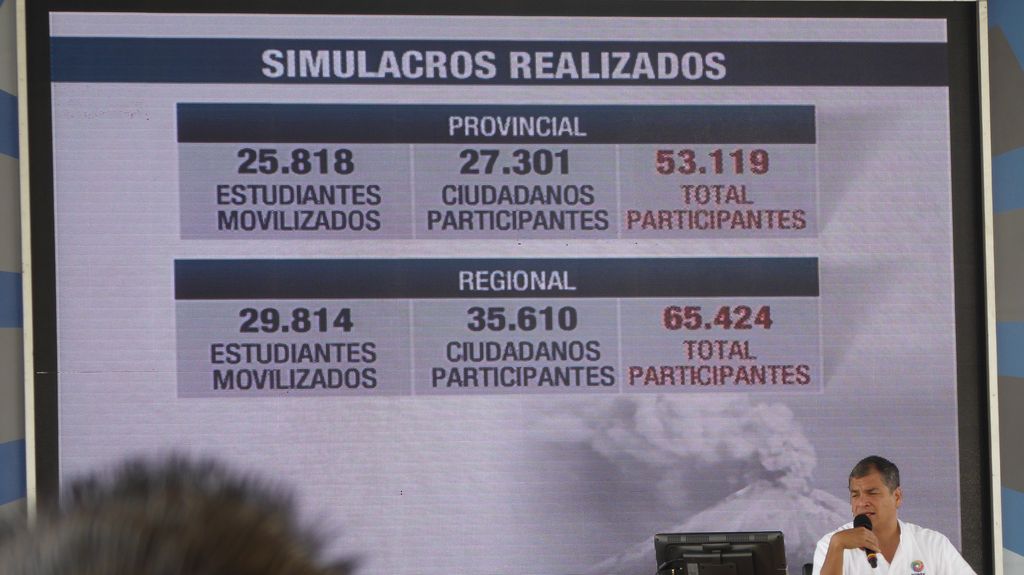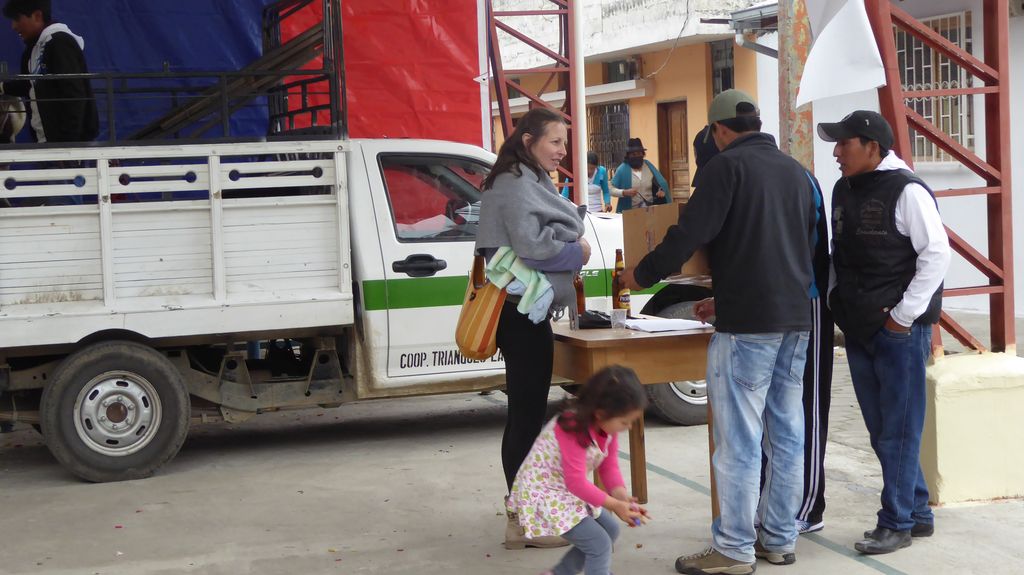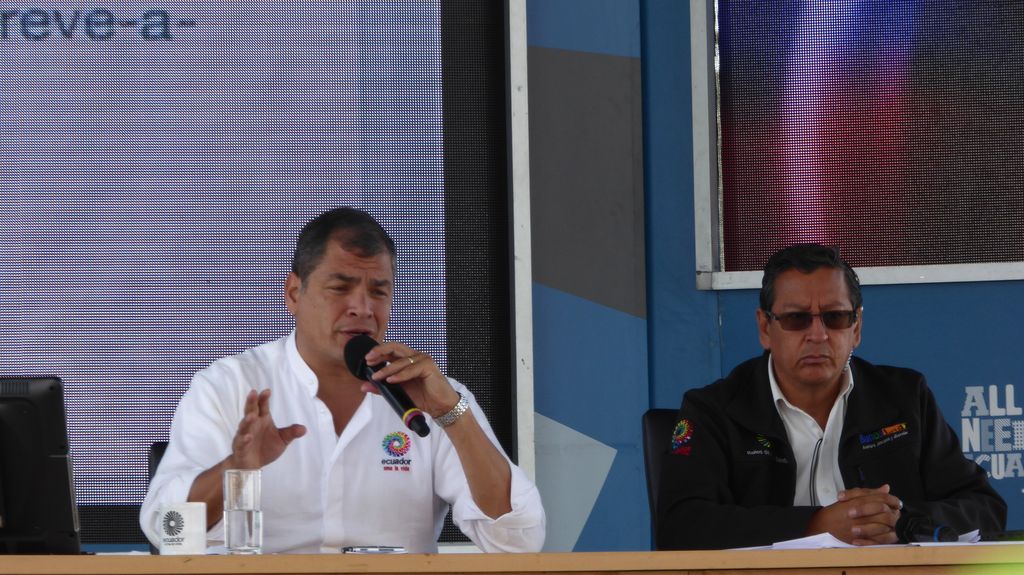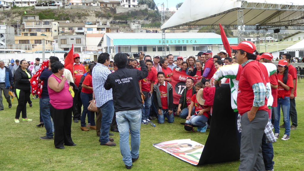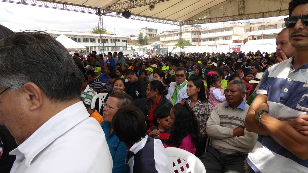 Zufällig haben wir auf der Straße erfahren, dass sich der Präsident Rafael Correa in Latacunga aufhält. Die sich bietende Gelegenheit haben wir sofort ergriffen. Die Veranstaltung fand nur einige Straßenzüge weiter statt. Wir konnten ungehindert das Gelände betreten und die Rede von Correa aus der Nähe verfolgen.