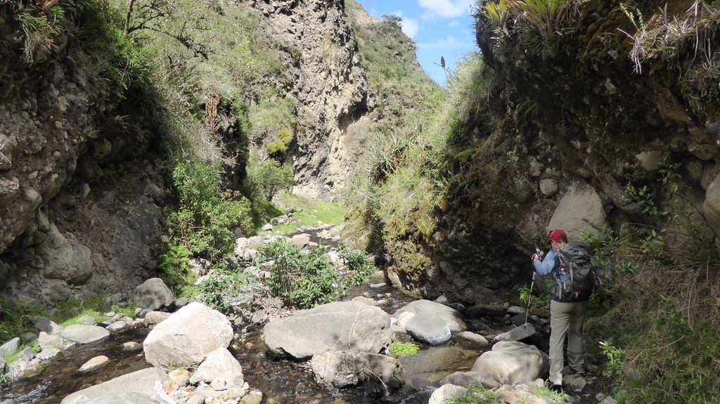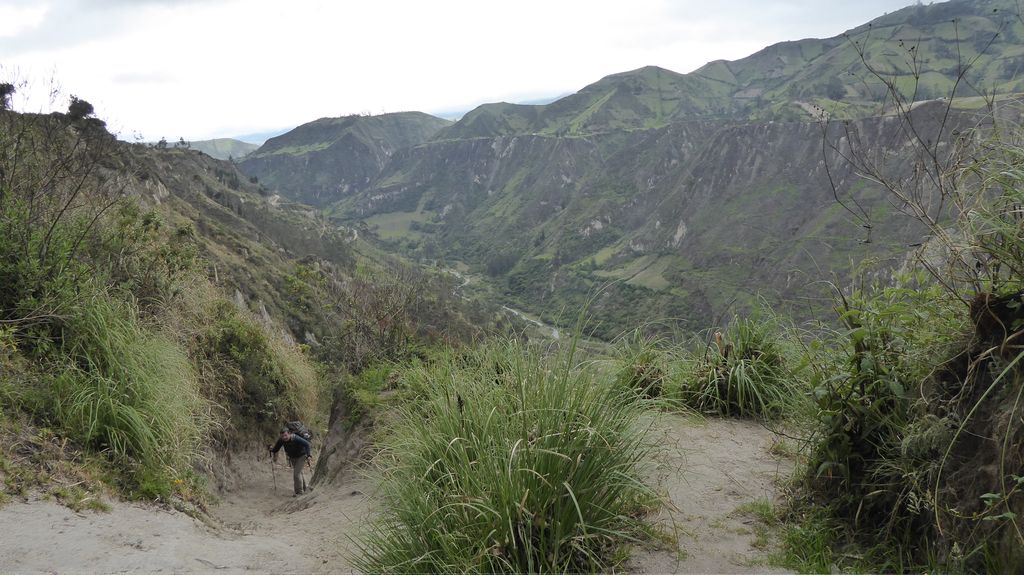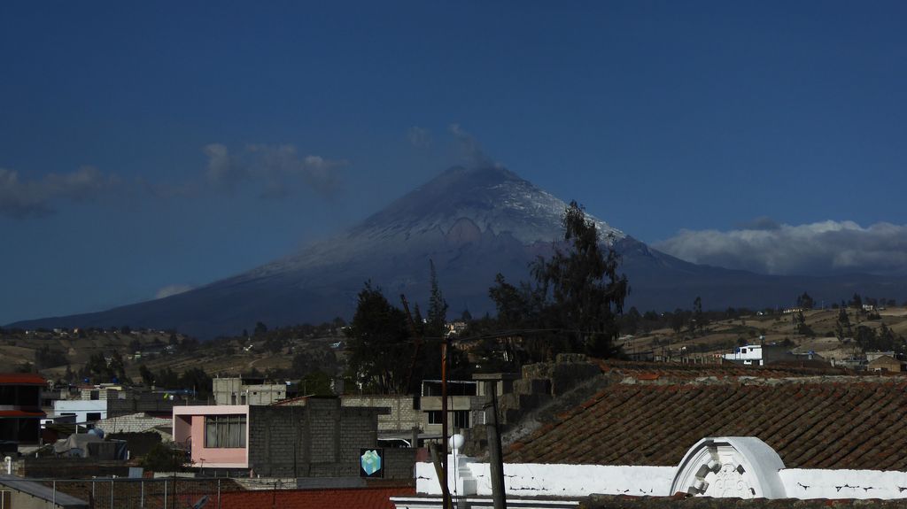 Der von der Hoteldachterrasse gut sichtbarer Cotopaxi war bei unserer Ankunft wegen der seit einigen Monaten andauernden Vulkanausbrüche geschlossen, also haben wir uns für einen dreitägigen Track zum Quilotoa Krater.