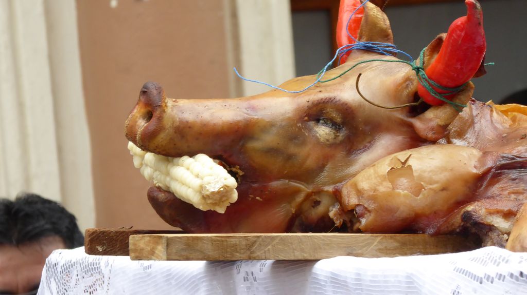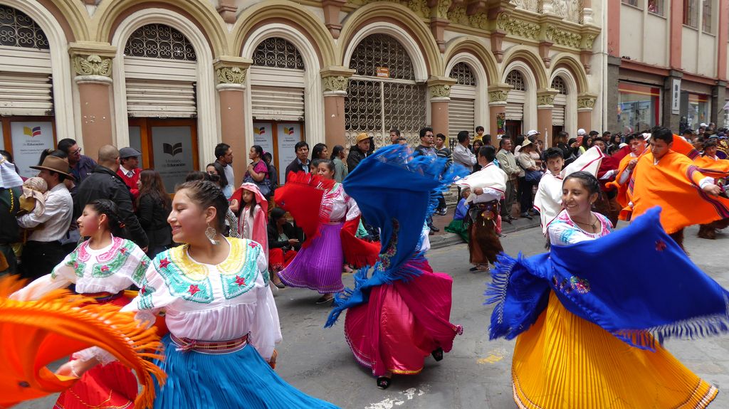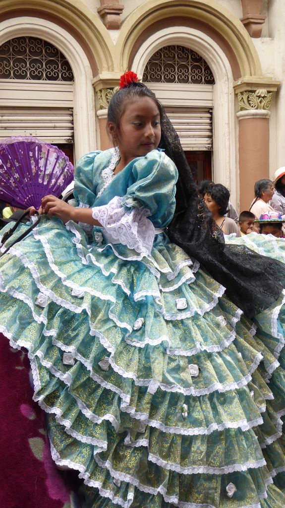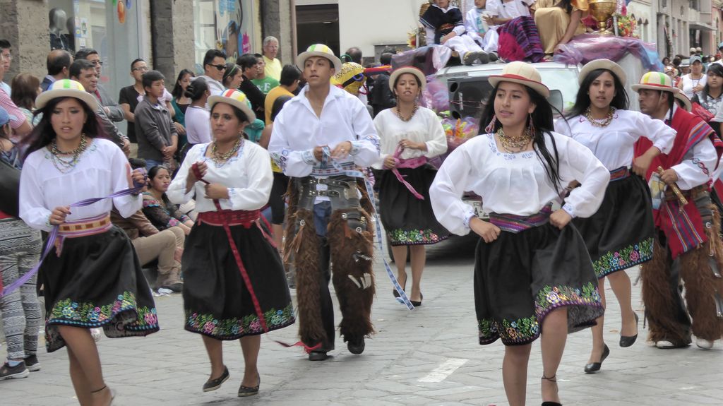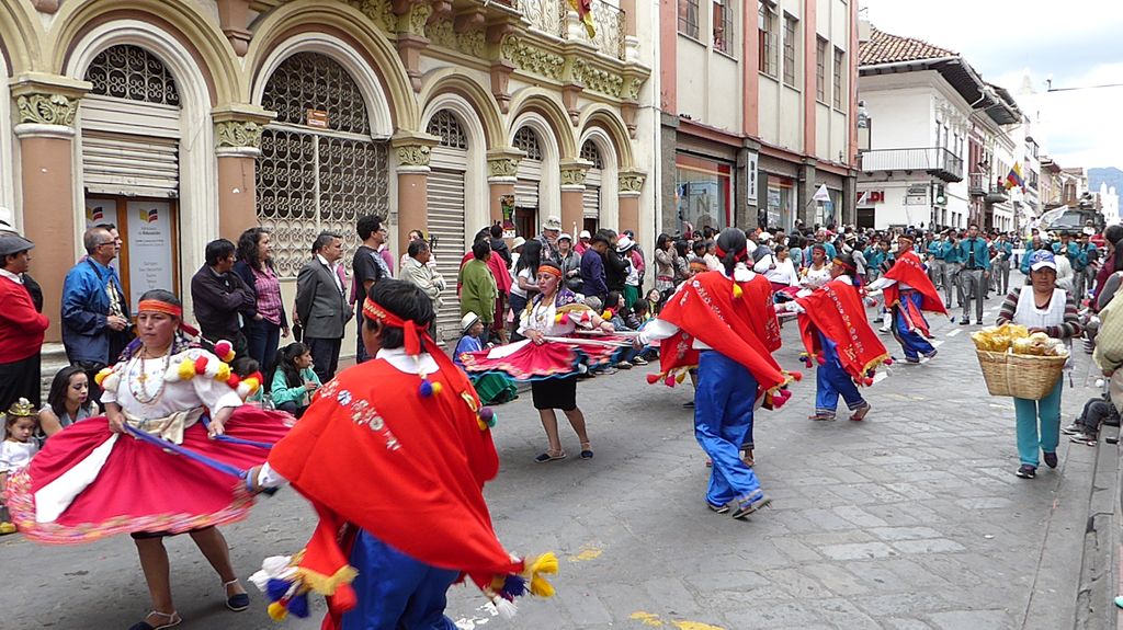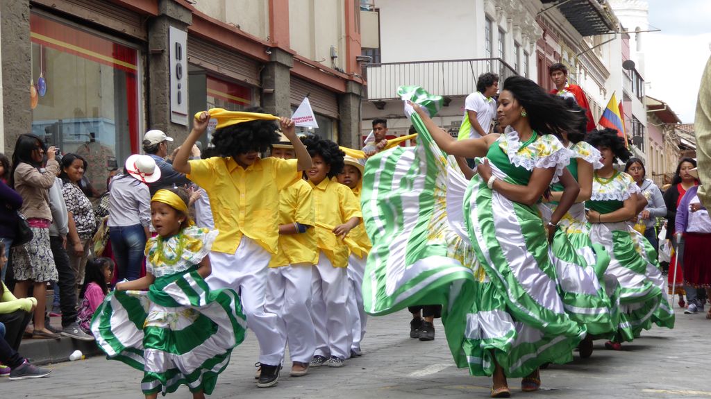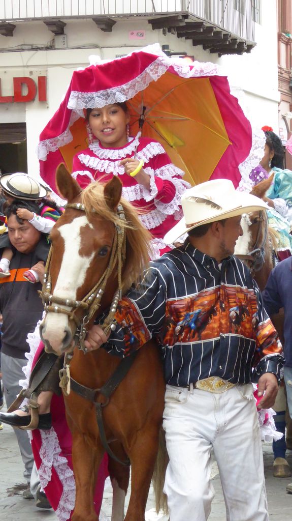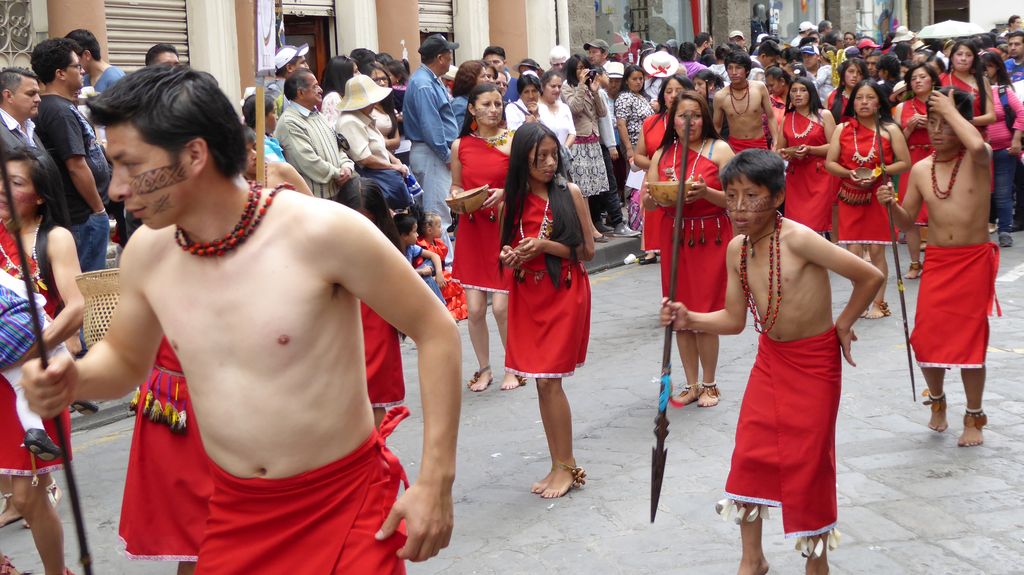 Am Heiligabend findet in Cuenca alljährlich der Umzug „Pase del Niño“ statt. Dies haben wir uns nicht entgehen lassen. Der Umzug begann um 9 Uhr und dauerte bis ca. 15 Uhr. Um das Ganze bei schönem sonnigen Wetter zu meistern, haben wir zu Hilfsmitteln gegriffen. Bei einer Straßenverkäuferin haben wir für 2 Dollar einen Plastikhocker erworben, auf dem Eva die ganzen sechs Stunden ausharren konnte. Zwischendurch haben wir kleine Standortwechsel vollzogen, um bessere Sicht auf den Umzug zu haben. Der Umzug lief chaotisch ab, eine Struktur war jedenfalls in meinen Augen nicht erkennbar. Neben organisierten Gruppen lief auch die halbe Stadt mit. Verkleidet als Engel und Superhelden säumten ganze Familien mit Kindern und Großeltern die Straßen. Auch kostümierte Hunde liefen im Zug mit. Am frühen Nachmittag haben einige Gruppen aufgrund der mehrstündigen Dauer das Corso vorzeitig verlasen. Der Umzug in Riobamba hat mir mehr zugesagt.