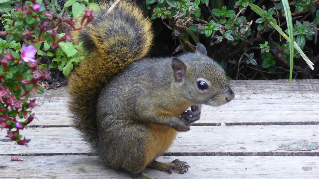 Die Sicht am Krater war leider durch Wolken beeinträchtigt. Abwechslung brachte lediglich die Wanderung durch die befestigten Wege des Regenwaldes, wo wir von neugierigen Eichhörnchen begleitet wurden.